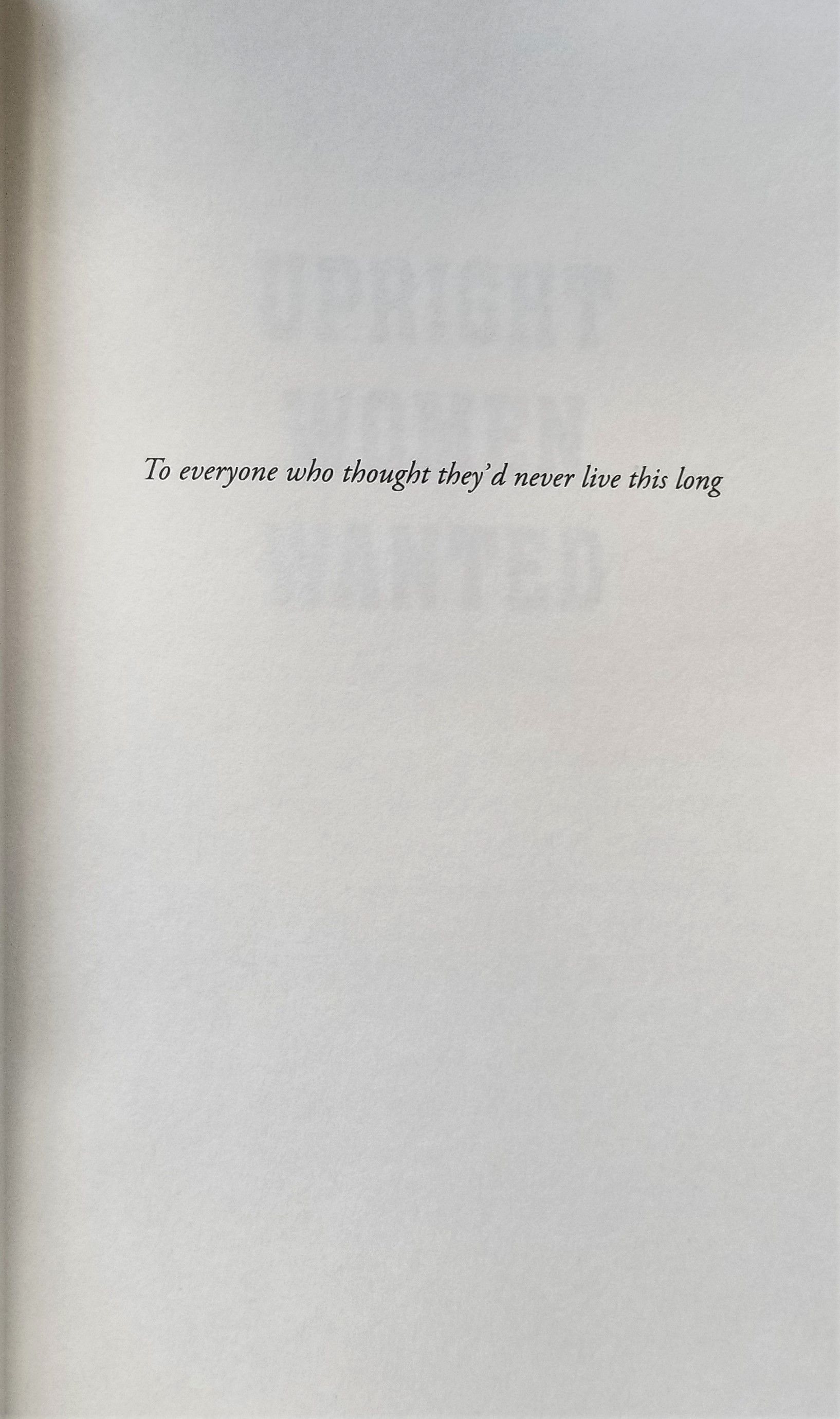 I often say that I never thought I’d make it this far. The dedication of Upright Women Wanted, which comes out on Tuesday (and which I am obligated to remind you to preorder), consecrates the book to people like me, who thought they’d be in the ground or scattered to the wind or eaten by carrion birds long before this particular sunrise.