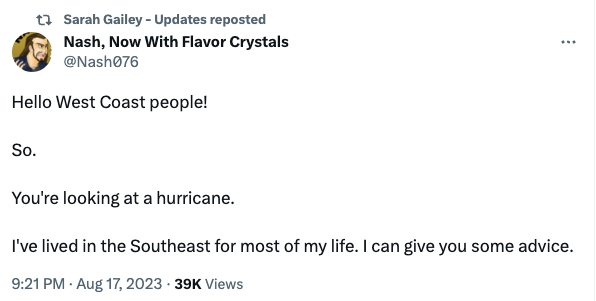 Oh, Also, There’s a Fucking Hurricane on the West Coast