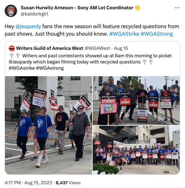 In order to continue airing without breaking the strike, Jeopardy will be reusing their old questions. If you’re looking to hit a winning streak, now’s your chance: