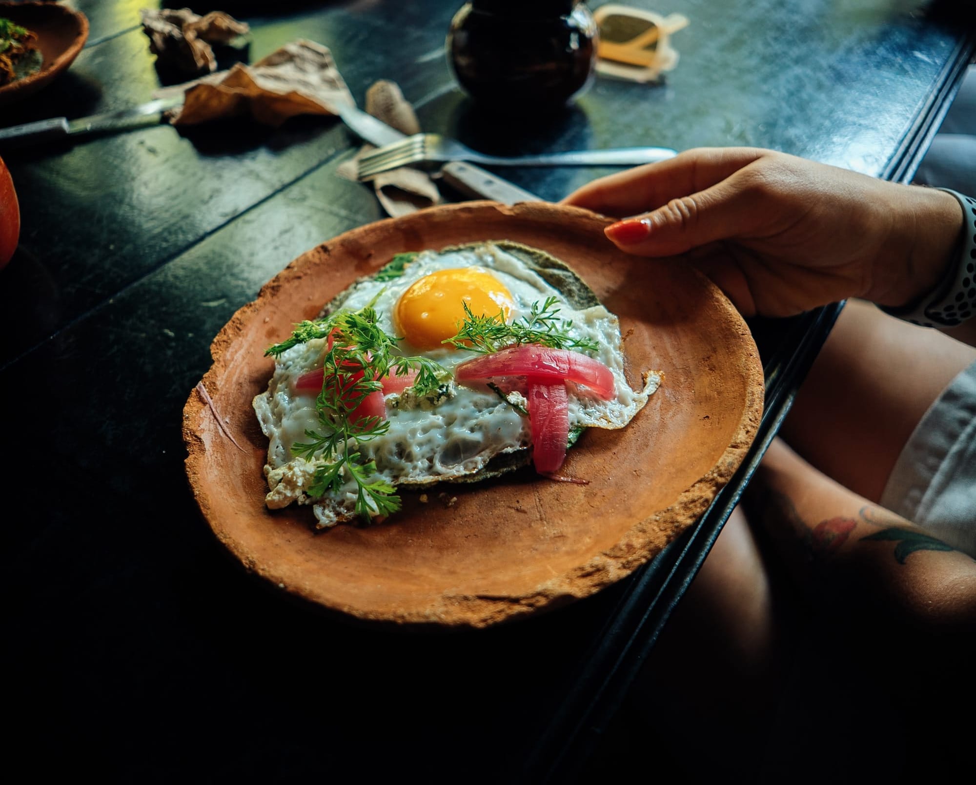 By the end, the fingers are slightly greasy from the tortillas and bathed by the other ingredients. Para chuparse los dedos is the ultimate compliment for a chef. With these eggs, it is a requirement.