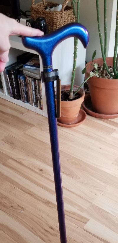I didn't realize how much I was isolating myself before I got this new cane. Last year, at WorldCon in San Jose, my legs collapsed from under me in a public space - it was scary and embarrassing, and it turns out that the experience has stayed with me all this time. Having a new cane that works and can support me has made me excited about going outside again. It's reminded me how much I love experiencing the world. I can walk around even when I'm hurting. I couldn't have afforded the cane without your subscriptions, and I wouldn't have known that a functional cane was an option without your advice.