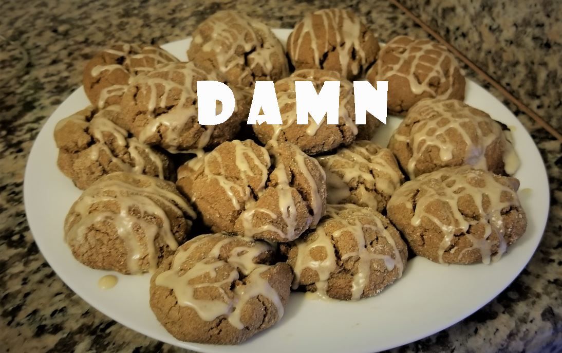 I wanted a limey rum glaze, so I juiced up my zestin' lime. I took 1.5 tbsp of lime juice and combined it with 1.5 tbsp dark rum, then whisked those into 1C confectioners sugar. The result was a glaze that was thin enough to drizzle over the fully-cooled cookies. You can drizzle in batches if you want, but I elected to do them one at a time to maximize the amount of glaze that went into those saucy lil crevices.