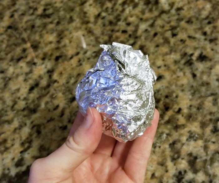 Step 5: Make a little pineapple. Twist the foil completely shut, then add a second later of foil over it and do the same thing. Don't skip the double-layering. You'll want to, but then bad things will happen and you'll be thinking to yourself "oh no, I should have double-layered the foil!" Save yourself that step.
