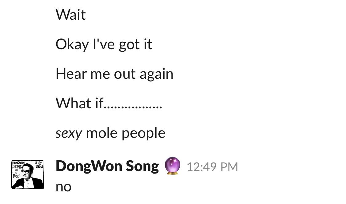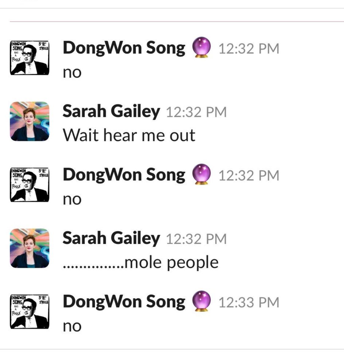 I am currently engaged in a cutthroat courtroom battle with my literary agent, DongWon Song, re: my first amendment right to compose and publish novels about mole-people.