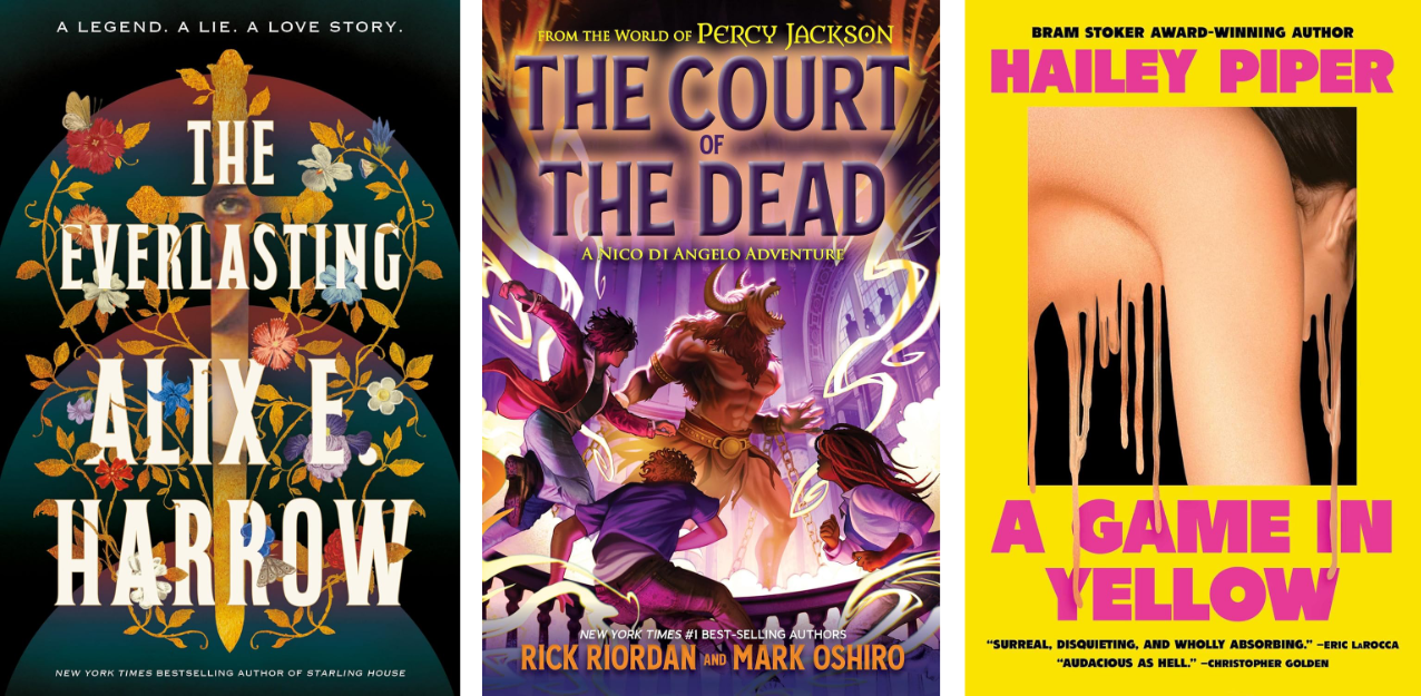 - The Everlasting by Alix Harrow, out October 28. I finished this yesterday and it is GORGEOUS. A knight and a propagandist historian pining for each other across time as the scales fall from their eyes. This is How You Lose the Time War meets Brave New World via Camelot. One of my best of the year, easily.