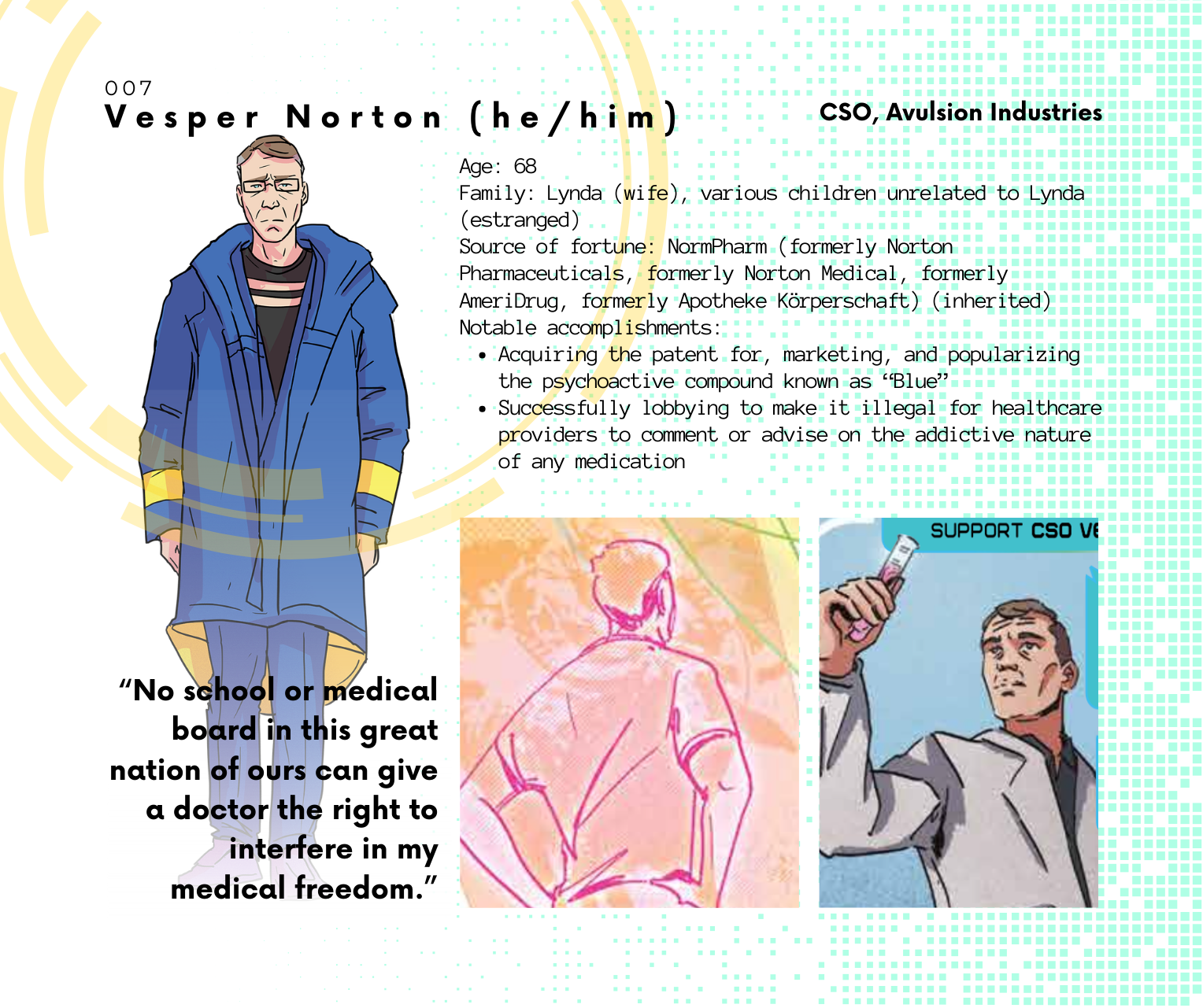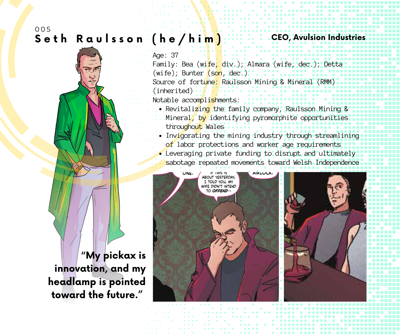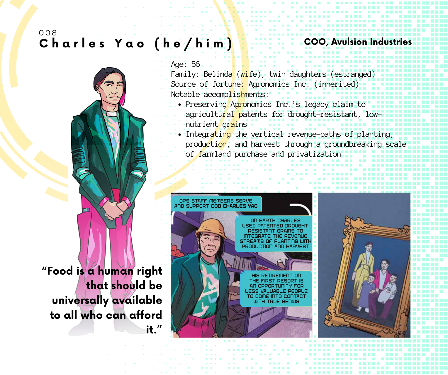 Meanwhile, check out these character dossiers and get to know some of the folks who live—and die—aboard the First Resort, a space station dedicated to the comfort of the upper class.