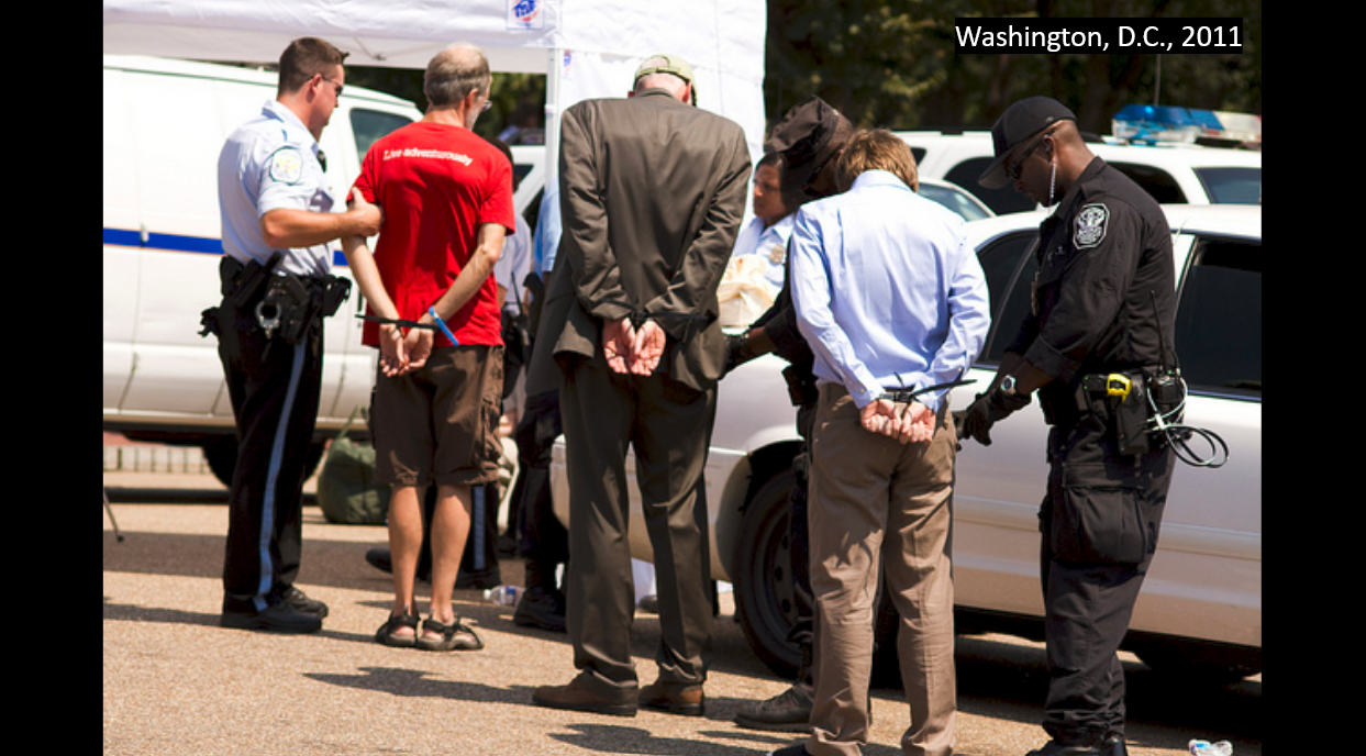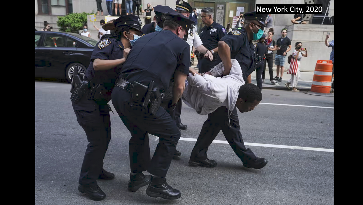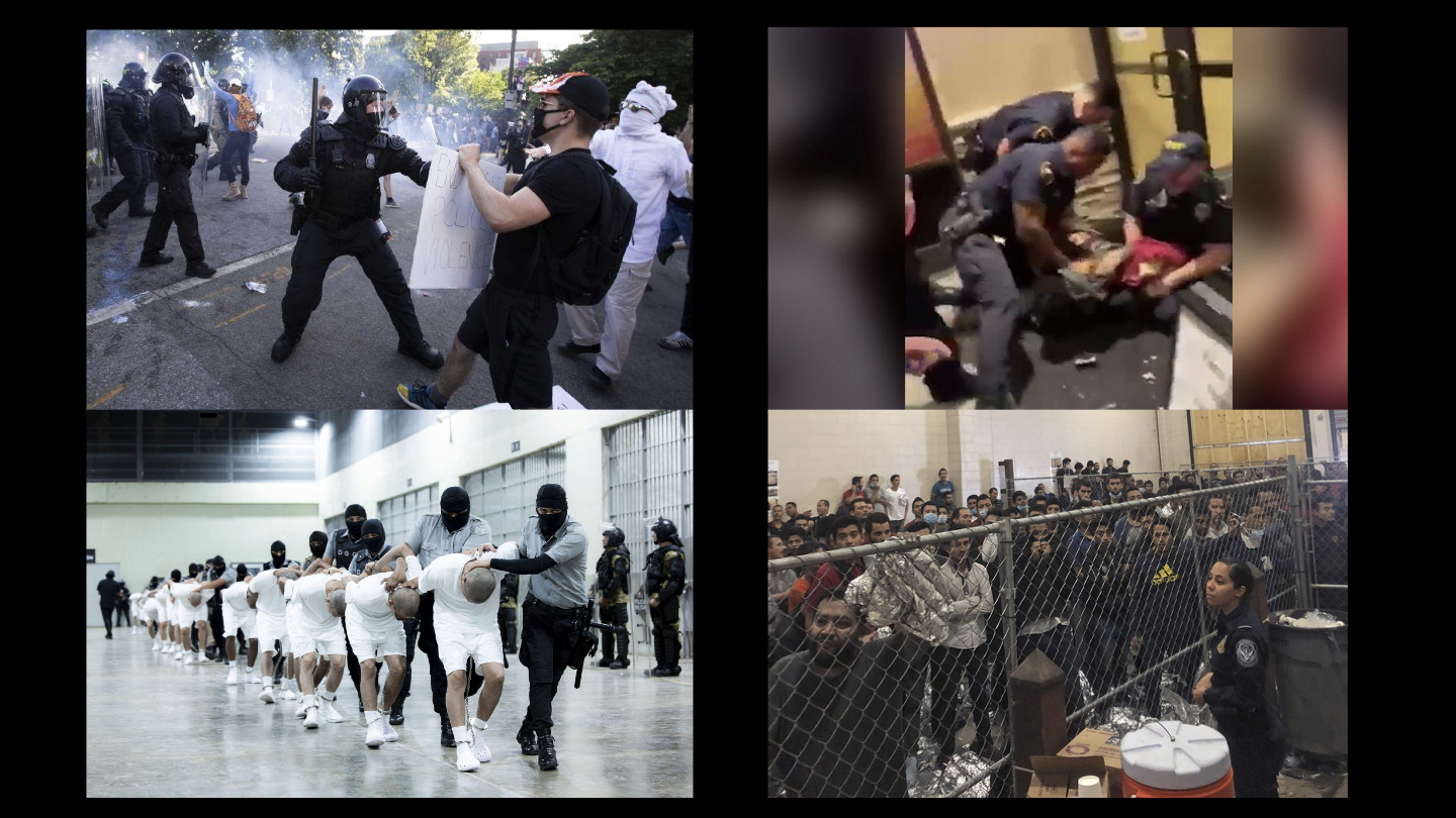 Before I begin, I want to make sure you’re aware that tonight’s talk will include discussion and images of police activity and conditions of incarceration. I think this subject is worth your attention and time, but if this subject matter isn’t something you think you can engage with here and now, I’d encourage you to watch this talk at home online later instead, where you can attend to your physical and emotional needs safely.