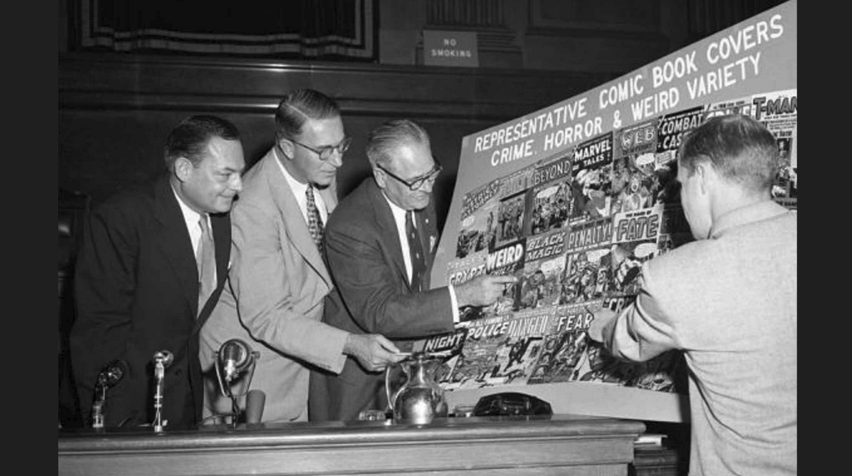 Like the Hays Code, this self-imposed industry-wide censorship effort developed in response to a moral panic of the era that was kicked into high gear by psychiatrist Fredric Wertham's book Seduction of the Innocent. The result of this moral panic was the attention of US Senator Estes Kefauver, who led a televised Senate hearing that targeted comics.