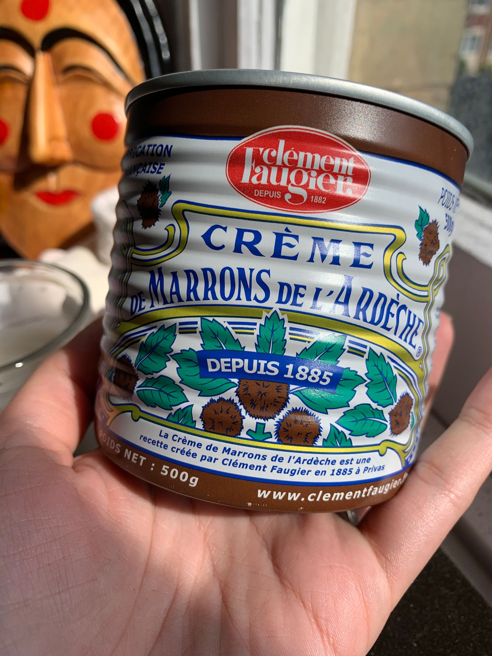 That right there is a big ‘ol can of chestnut cream! There are only three major chestnut-producing regions left in France: Corsica, Ardeche (where these chestnuts hail from), and Limousin. Did you know: it’s only a limousine if it comes from the Limousin region of France, otherwise it’s just a sparkling van.