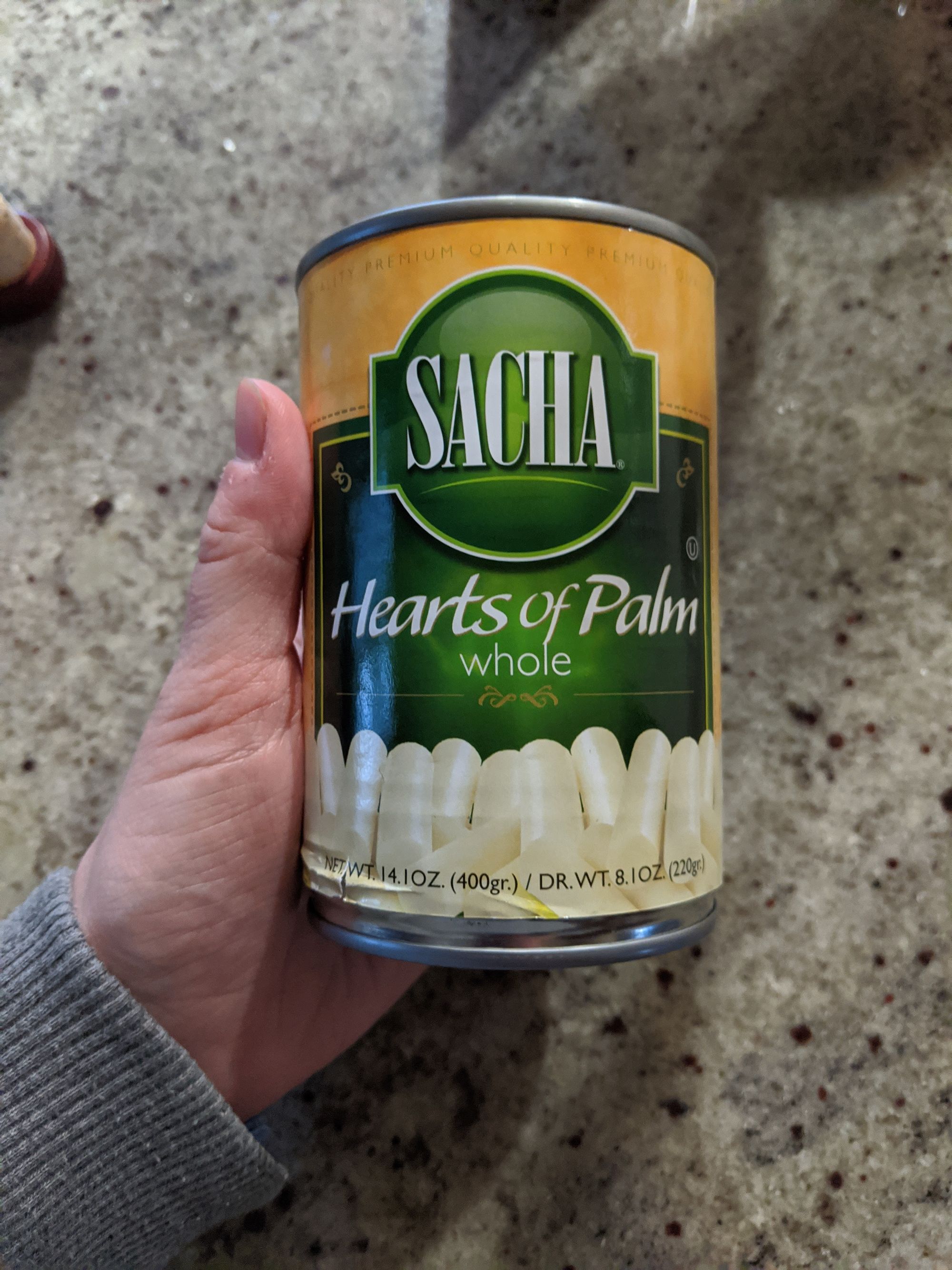 If you don’t have hearts of palm here, you can use artichoke hearts.