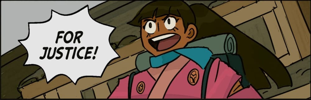 I'm really happy with the flow page-to-page and the expressions for the characters! It was fun to show their full range of emotions, from goofy to serious and everything in between. I also hadn't done much action drawing before so the fight scenes really pushed me out of my comfort zone, but I'm happy they did because I think they turned out nicely! - Faith Schaffer, Illustrator